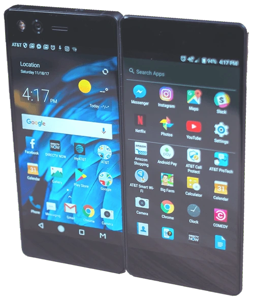 Taking a look at the ZTE Axon phone you may think that it is pretty standard. In many ways, it is a standard smartphone. It has a 5.2" full-HD display. It's running a Qualcomm Snapdragon 820 processor. It has 4GB of RAM and a 20MP camera. All of that stuff is pretty standard. What makes the Axon M unique is that it doesn't have just one display, it has two! Just flip it open at the hinge and you have a two-screen phone.